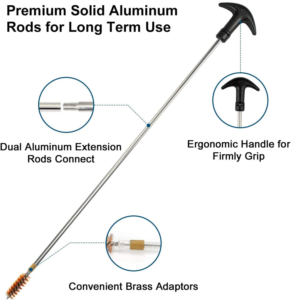 The rod could be lengthened to 27.5in. With the different caliber mops and brushes, the cleaning kit could be used to clean many kinds of guns. Such as 12 gauge shotgun, glock, ar15, a15, ak47, 1911, etc.